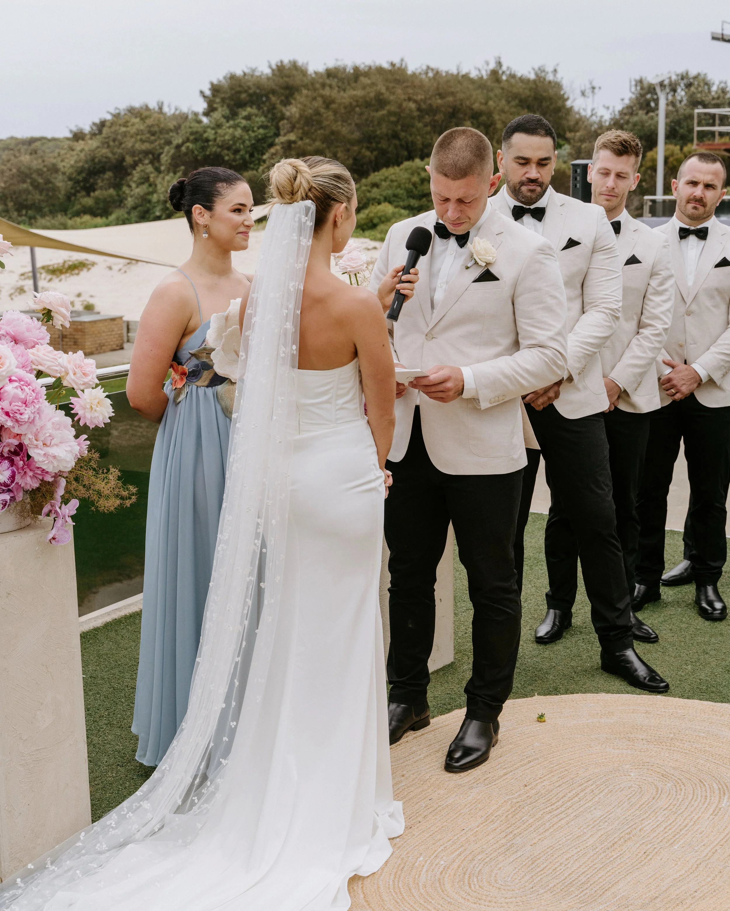 “Jess Farchione, without her I would still be at the altar trying to put my feelings into words! Talk about above and beyond. For months on end I sat down in silence trying to figure out how to put these massive emotions about the woman I cared for the most into words. It seemed like an impossible task. Jess one day asked me, “hey pooley! Instead of filling out the survey why don’t you come round we chat and I take down words that come out naturally.” A 15 minute catch up turned into a hour of laughs, tears and the most beautiful memories. Jess pulled from me all my massive emotions that I felt for my beautiful wife. Being a bloke I often struggle to get my feelings out onto paper, Jess made this process incredibly fun and memorable! I couldn’t speak highly enough of the service she provided.”