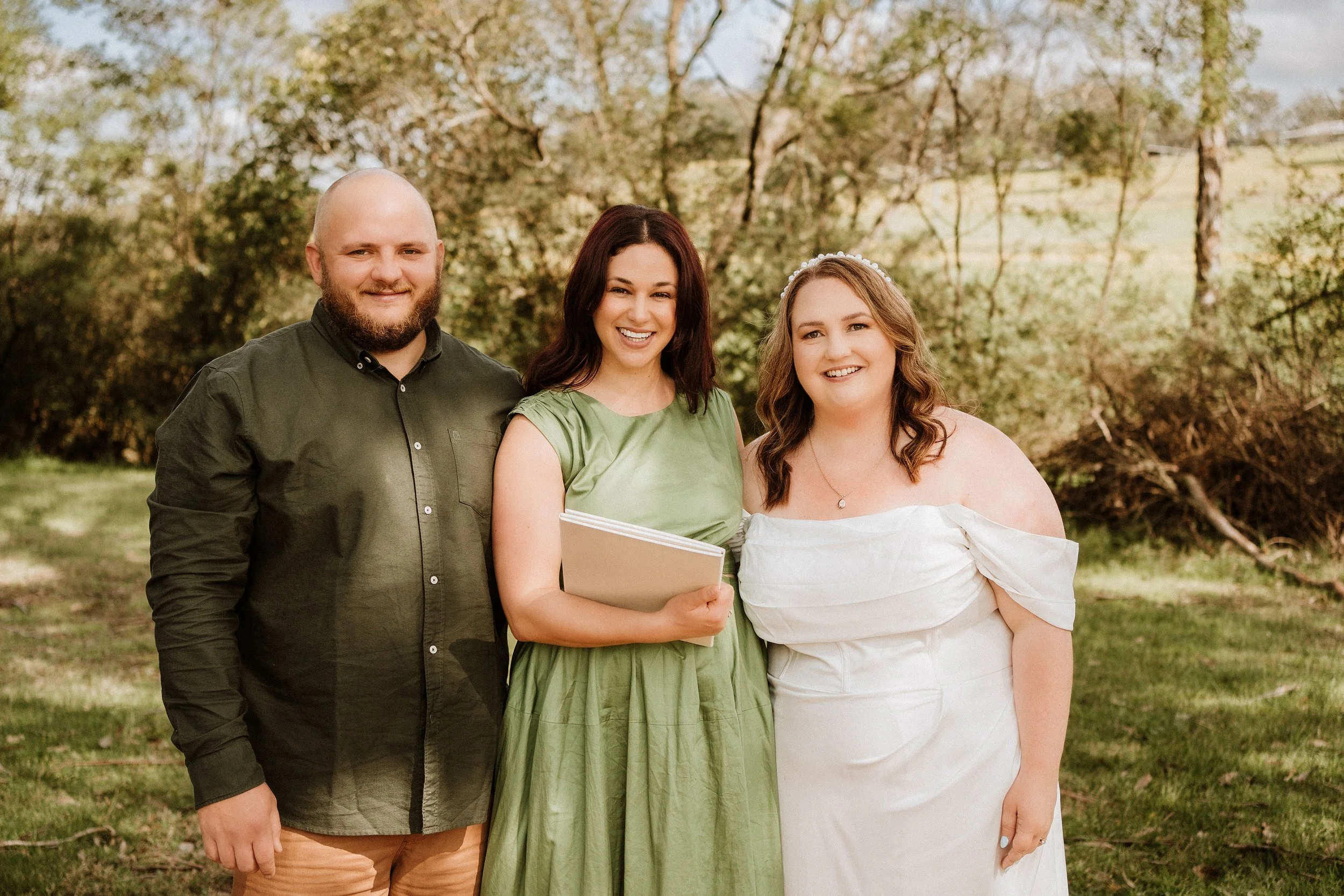 “When my husband and I finally decided to tie the knot after a super long engagement we knew we had to reach out to Jess. Words can’t describe what a wonderful celebrant she is. Jess is the most beautiful person and she made us feel like old friends. We were instantly comfortable with her and she simplified the whole process for us, creating a stress free lead up to our wedding. Even though we were her first offical wedding Jess was a natural and all went off without a hitch! We had a few changes in the lead up to our wedding (all on our end) a partner who works away, venue change, date change etc. We probably couldn’t have been a more challenging couple if we tried but Jess was extremely flexible and never made us feel like a burden. As we eloped we opted for the piccolo package but it still felt personal. She even went above and beyond and doubled as a baby and dog sitter during our photoshoot post ceremony. Jess was always professional yet personal, helpful and flexible and we could not have picked a better celebrant. We highly recommend her! Not that we plan on getting married again but if we did we would book her again. Maybe a vow renewal in the future.